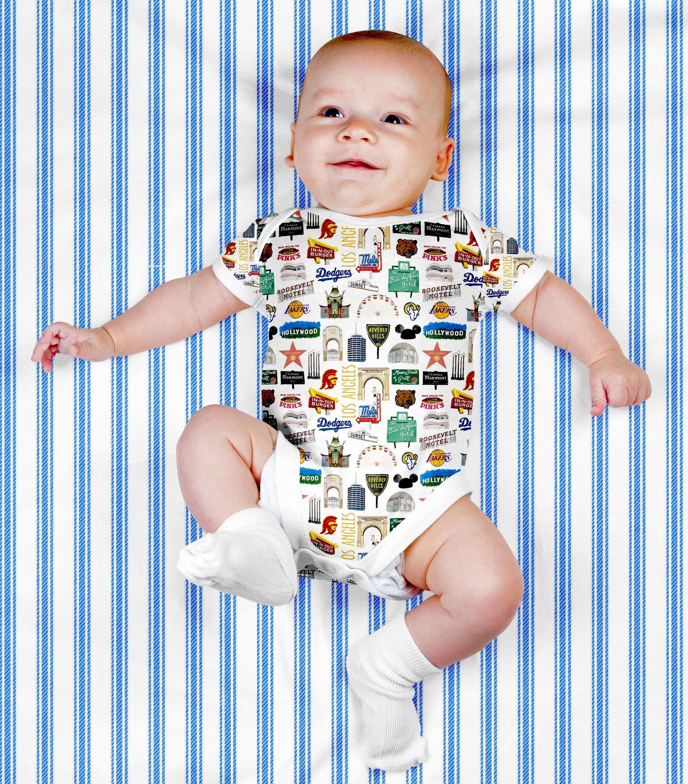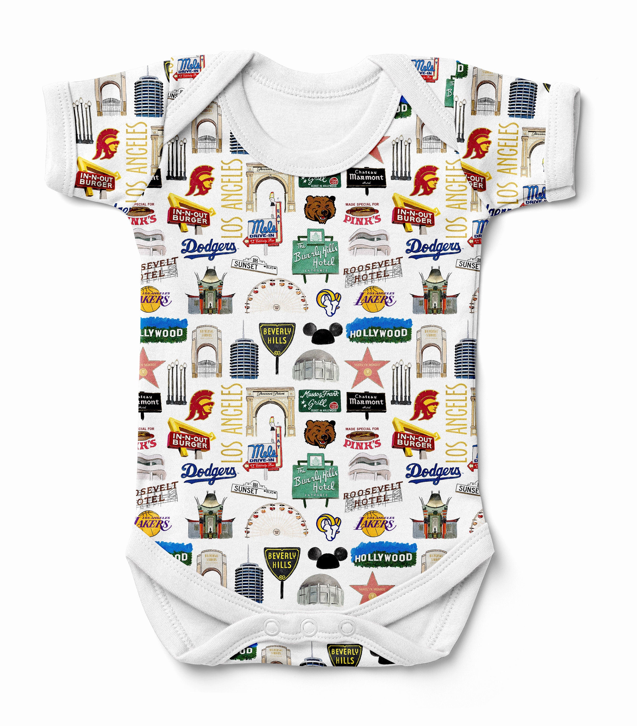 Our baby bodysuits come in 5 sizes and are a clever little homage to some of our favorite locales. Each onesie features iconic original images, and is gift wrapped in a cellophane bag. They are made-to-order; the general lead time is approximately 2 weeks-3 weeks.