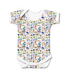 Each bodysuit is made of organic cotton and feature a reinforced snap crotch and a repeat print on the front, back and sleeves. Machine wash cold. Tumble dry light. The pattern placement will vary depending upon the size.