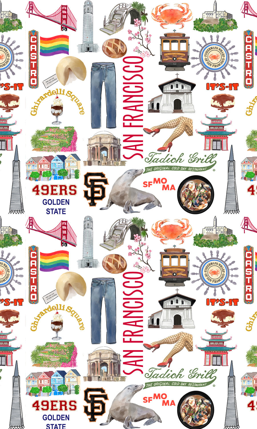 Wrap it up in style with our homage to San Francisco gift wrap. This listing is for an order of 5 sheets, shipped rolled. Each sheet measures 20" x 29". Printed on high-quality, 70# opaque stock.