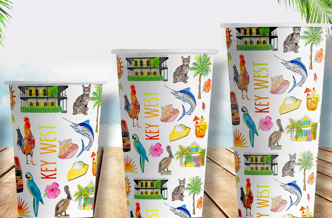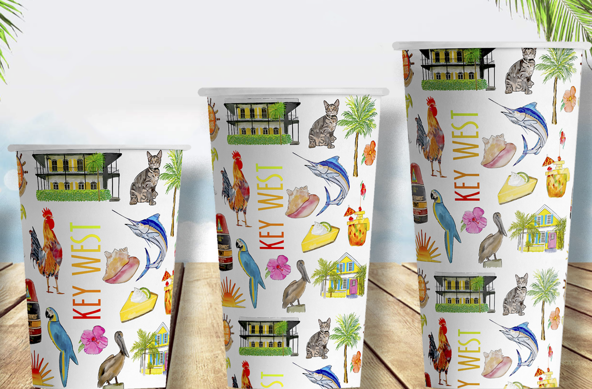 Original watercolors of iconic locales are featured on our paper party cups. Available in 3 sizes, our cups can also hold snacks, favors or flowers. They are covered with our own designs that are permanently adhered to these disposable cups and are intended for one time use only. Your order will include 12 cups.