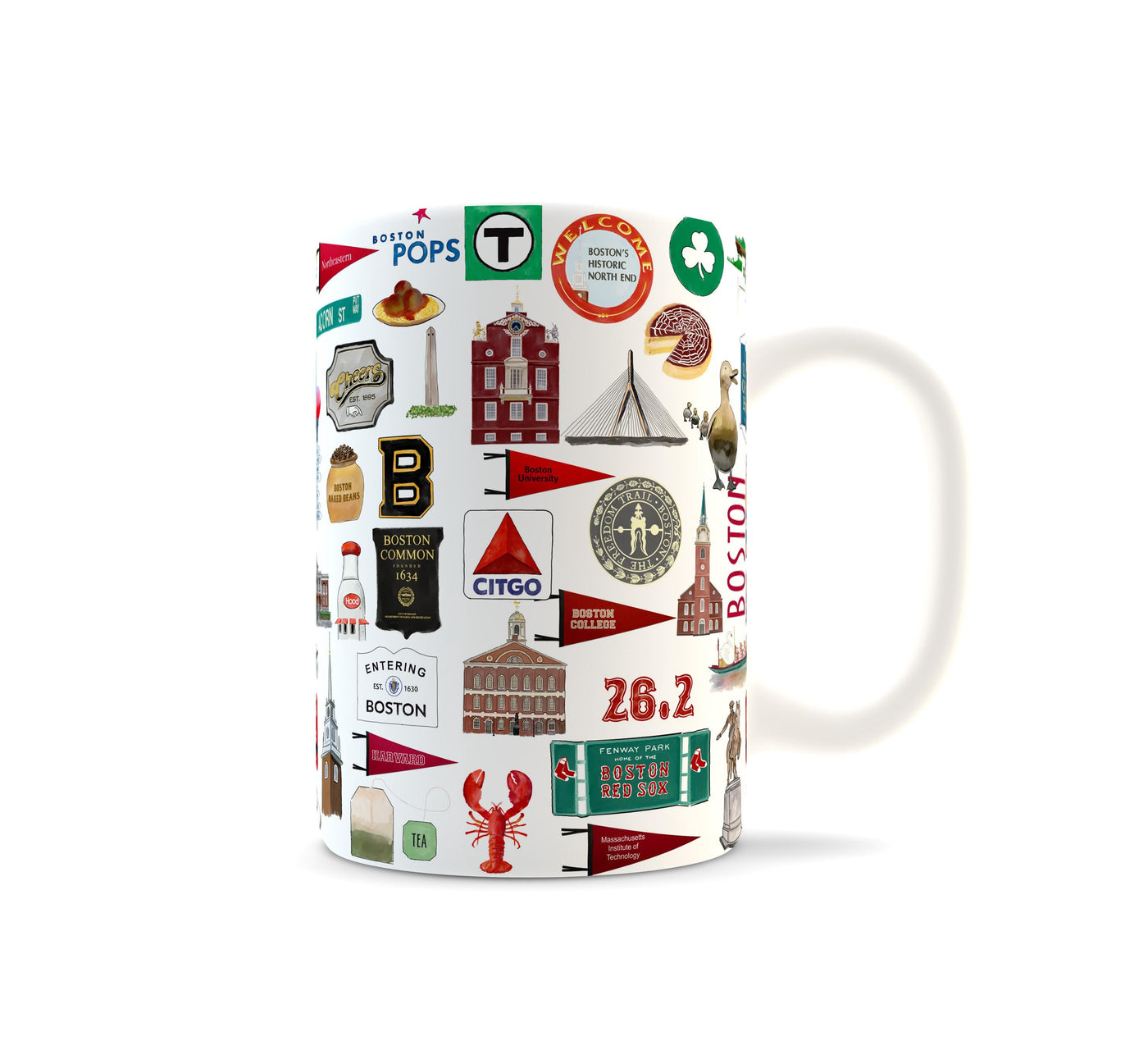 Iconic Boston, Massachusetts Watercolor Ceramic Mug
