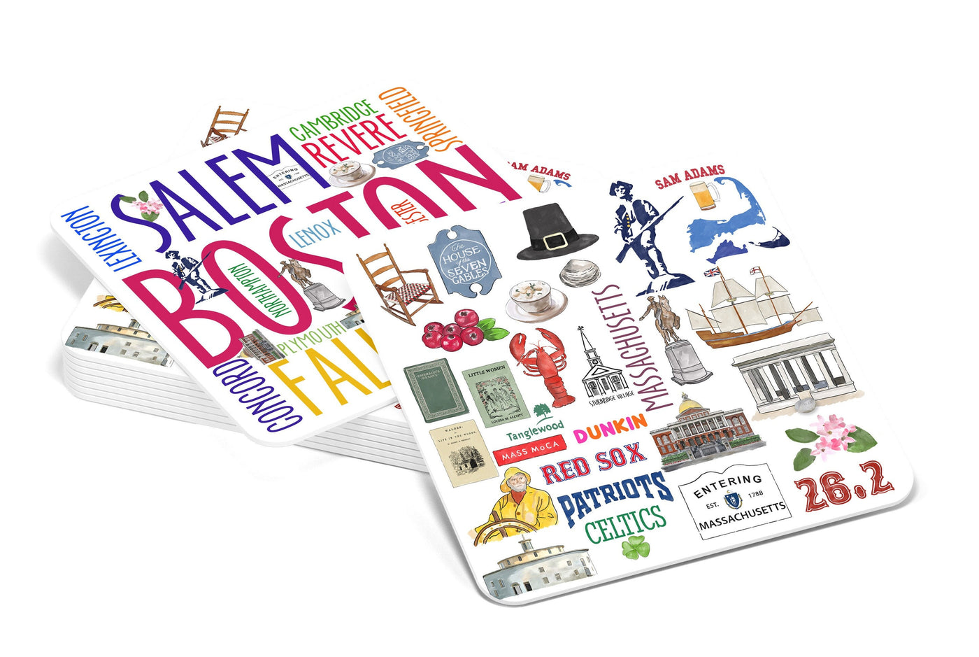 Home › MASSACHUSETTS › Iconic Massachusetts Watercolor Paper Coasters - Set of 10