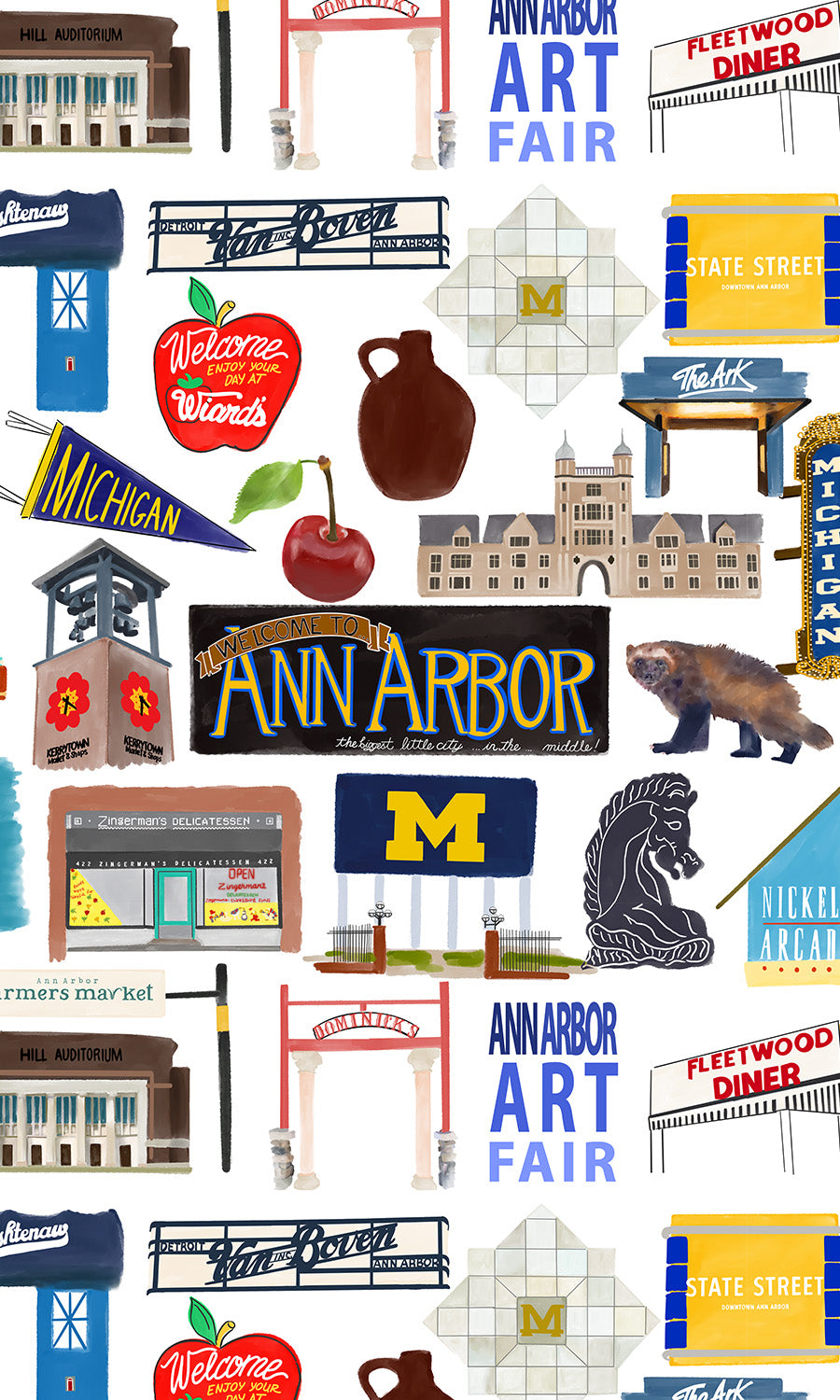 Wrap it up in style with our homage to Ann Arbor, Michigan gift wrap. This listing is for an order of 5 sheets, shipped rolled. Each sheet measures 20" x 29". Printed on high-quality, 70# opaque stock.