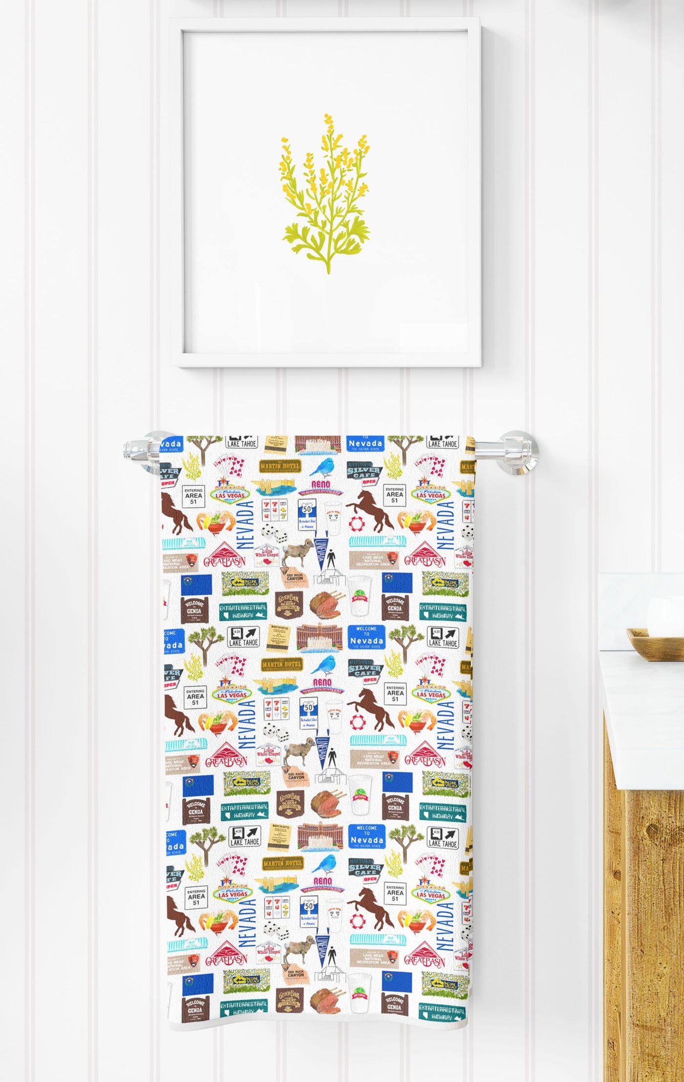 Our towels feature original watercolor art of iconic locales. We offer two sizes to fit your bathroom needs. Hand towels measure 16" x 28" and our bath towels measures a generous 30"x60". The printed side provides a vibrant print, while the reverse cotton side provides for softness and absorbency.