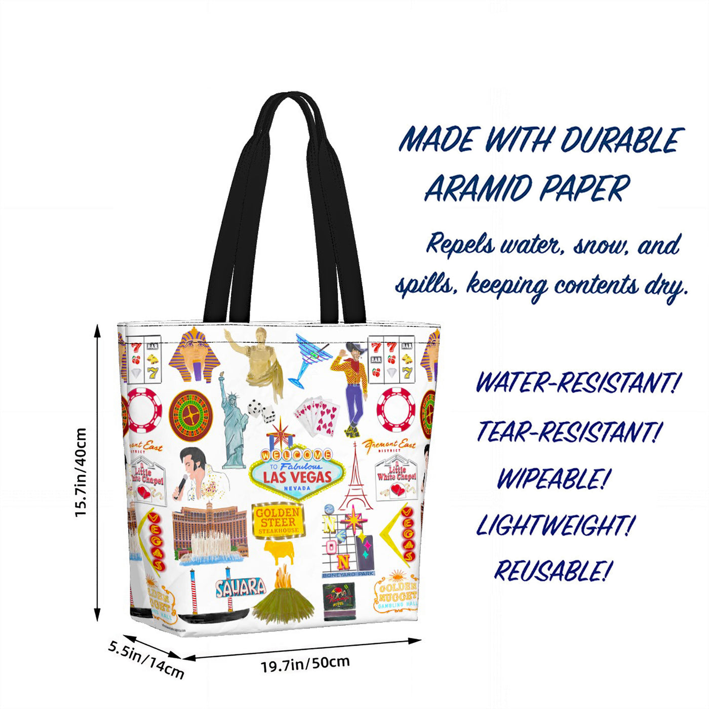 Meet your new favorite everyday essential: our Las Vegas Everything Bag. Spacious, lightweight, and effortlessly stylish, this oversized bag celebrates sin city, with function at its core. Featuring a secure zippered pocket inside to keep your essentials safe, it’s the perfect blend of practical and iconic. Made of durable aramid paper (yes, paper), the Everything Bag is roomy and lightweight, as well as extra strong. It wipes clean in a flash and conveniently folds up to 10"x9" for easy packing! Made for weekend getaways, farmers market hauls, beach days, baby essentials, road trip necessities and everything in between.