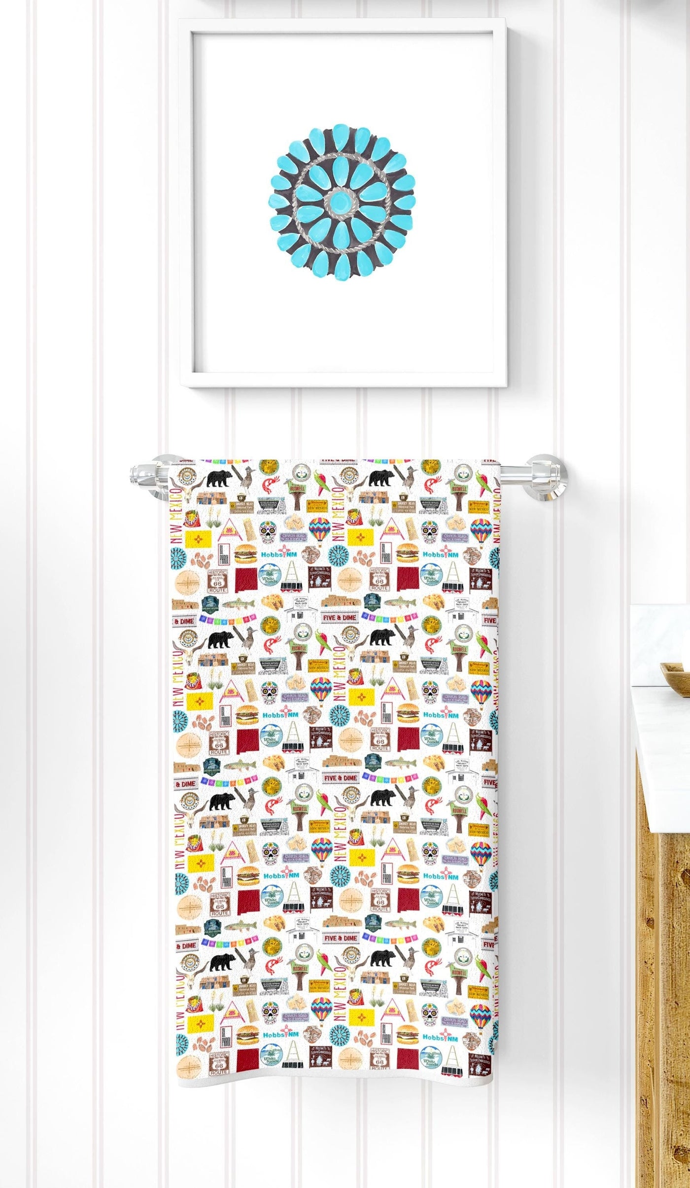 Our towels feature original watercolor art of iconic locales. We offer two sizes to fit your bathroom needs. Hand towels measure 16" x 28" and our bath towels measures a generous 30"x60". The printed side provides a vibrant print, while the reverse cotton side provides for softness and absorbency.