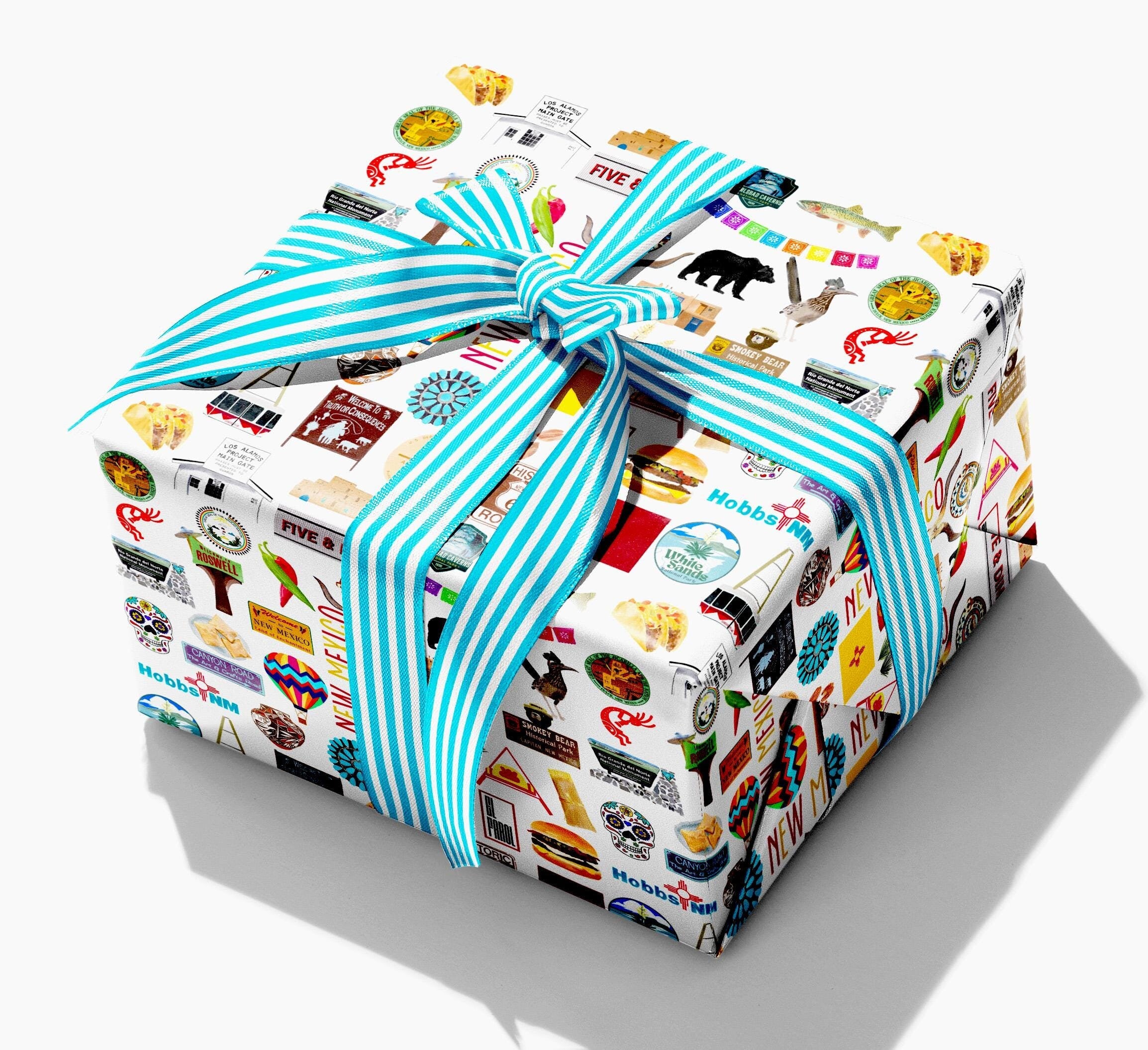 Wrap it up in style with our homage to New Mexico gift wrap. This listing is for an order of 5 sheets, shipped rolled. Each sheet measures 20" x 29". Printed on high-quality, 70# opaque stock.