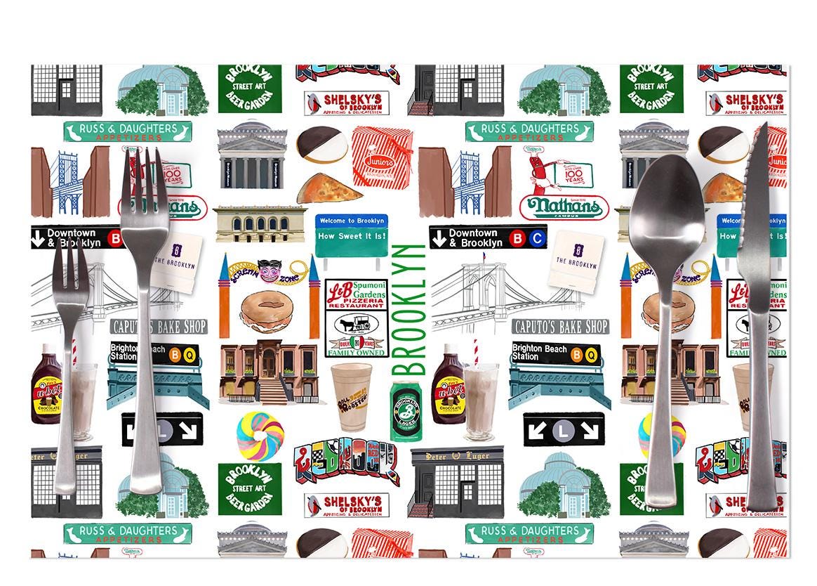 Home › NEW YORK › Iconic Brooklyn, NY Watercolor Disposable Placemats - tear-away pad of 24