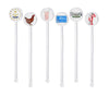 Six iconic Rhode Island watercolor images are features on our set of 12 reusable swizzle sticks. Each clear plastic swizzle stick measures 7" long. The circle portion with the image is 1.25" round. The image is printed directly onto the stick. Smartly packaged and ready for gift-giving.