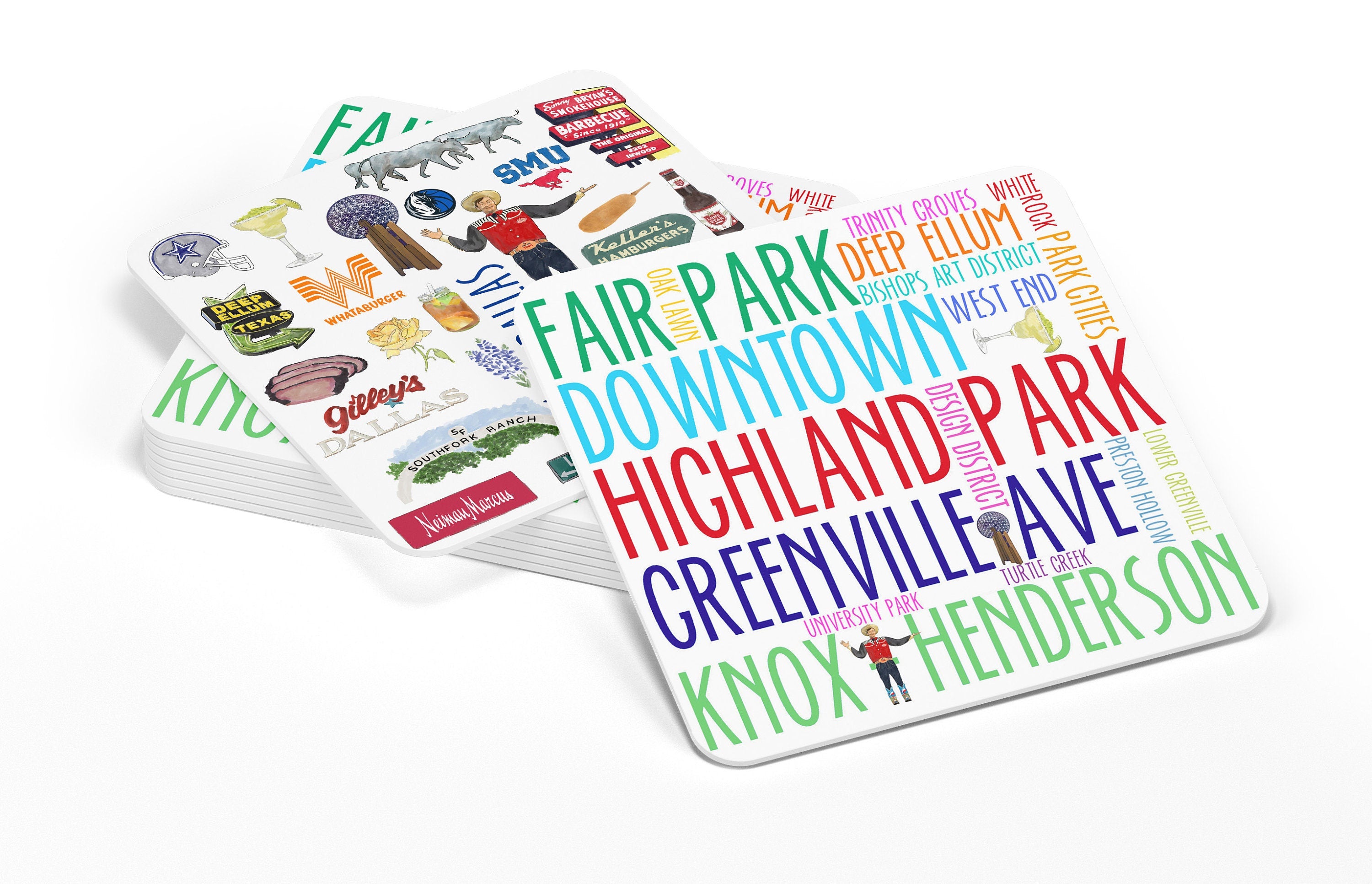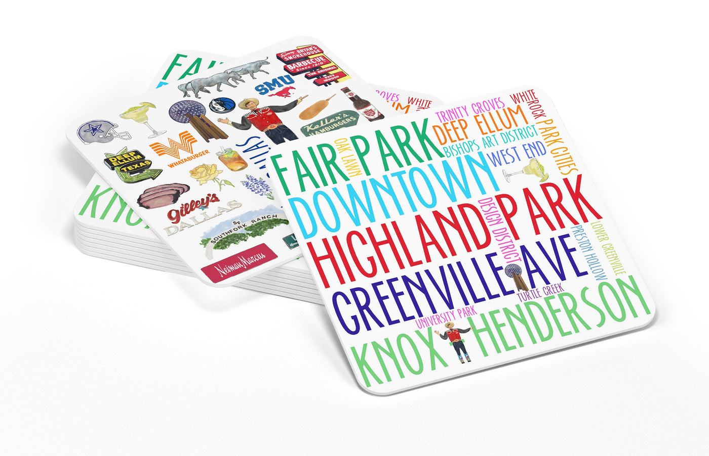 Our paper coasters measure 4"x4" and are available in 110# felt, or 28 pt. double thick. They're double sided (the second pattern shown is the reverse side). The lighter weight of the two is perfect for a large gathering. They're sturdy but make a statement. The double thick are perfect for a dinner party or smaller gathering when you really want to pack a punch. Both weights are double-sided.