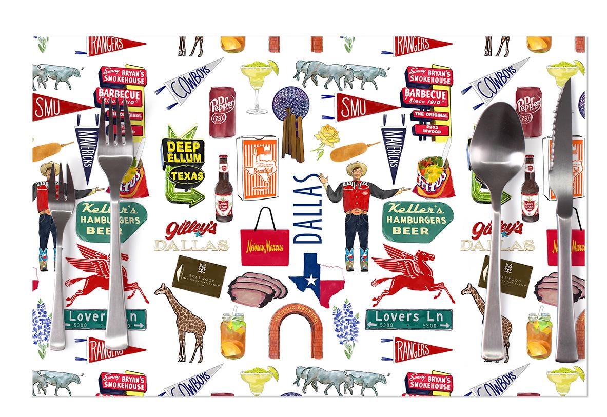 Home › Iconic Dallas Texas Watercolor Disposable Placemats - tear-away pad of 24