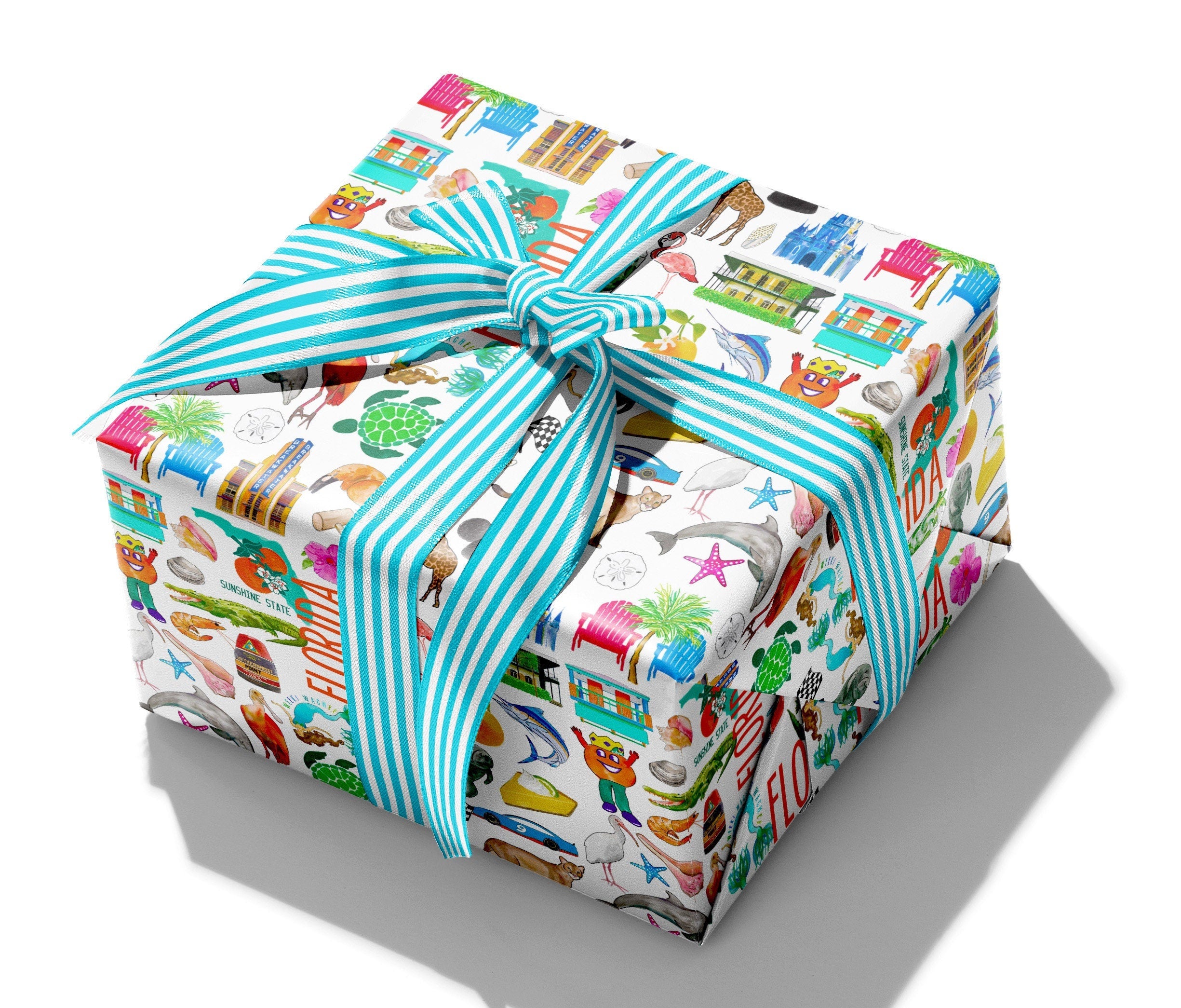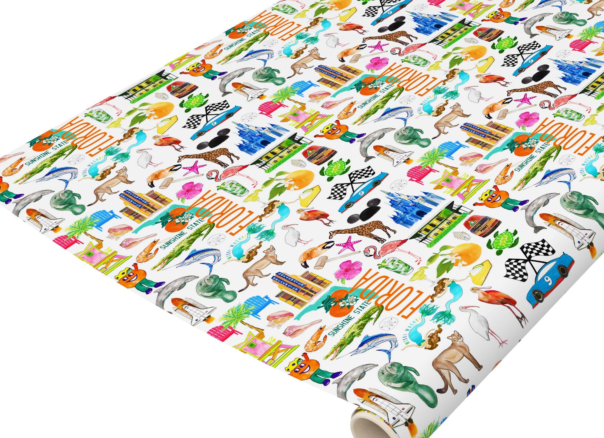 Wrap it up in style with our homage to Florida gift wrap. This listing is for an order of 5 sheets, shipped rolled. Each sheet measures 20" x 29". Printed on high-quality, 70# opaque stock.