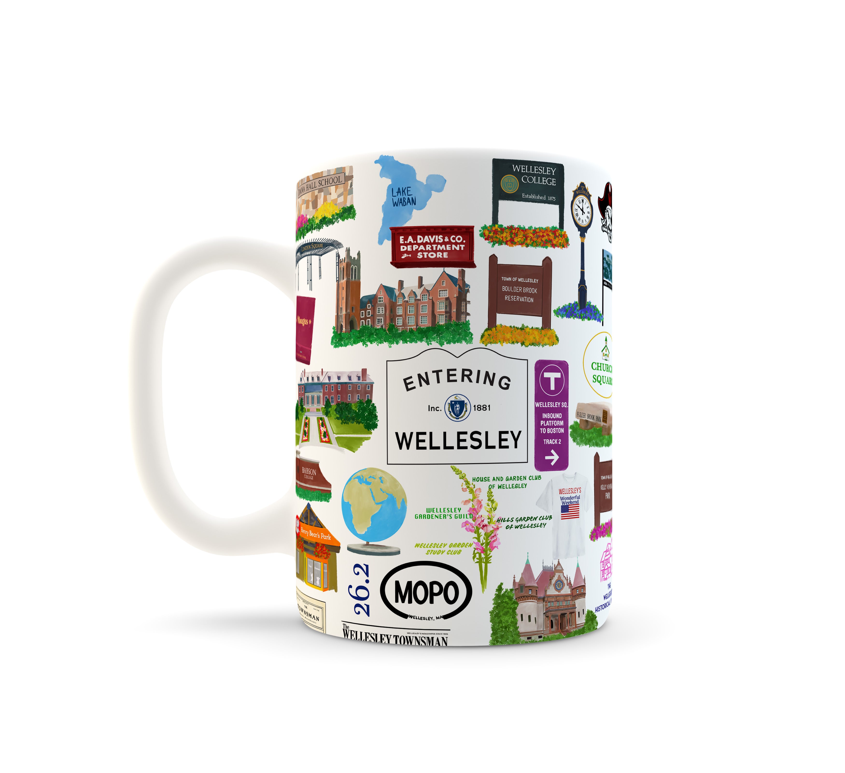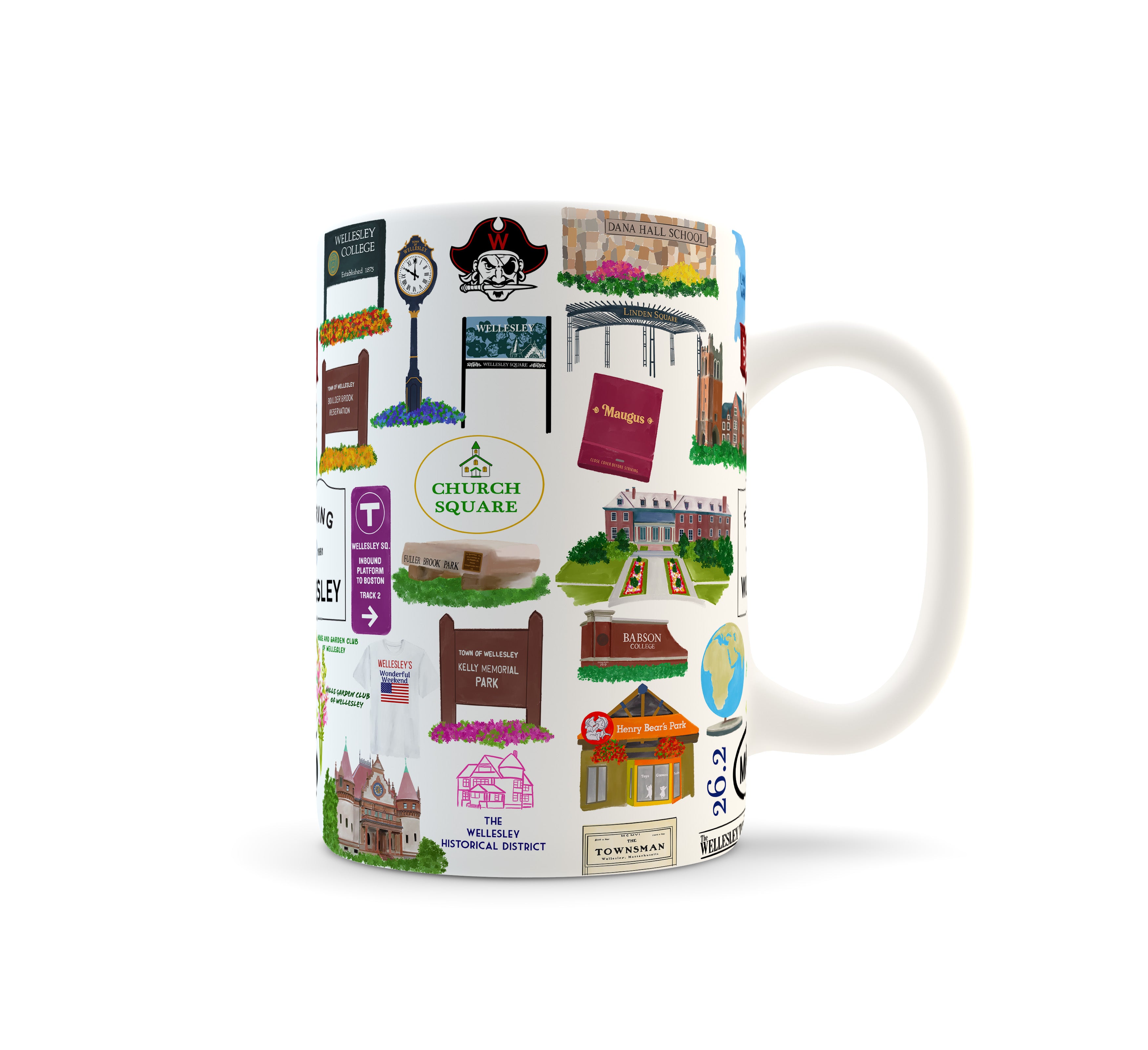 Enjoy your hot beverage in style with our Wellesley, Massachusetts ceramic coffee mug. Ideal as bridal party gifts, for gift exchanges, engagement or holiday giving.