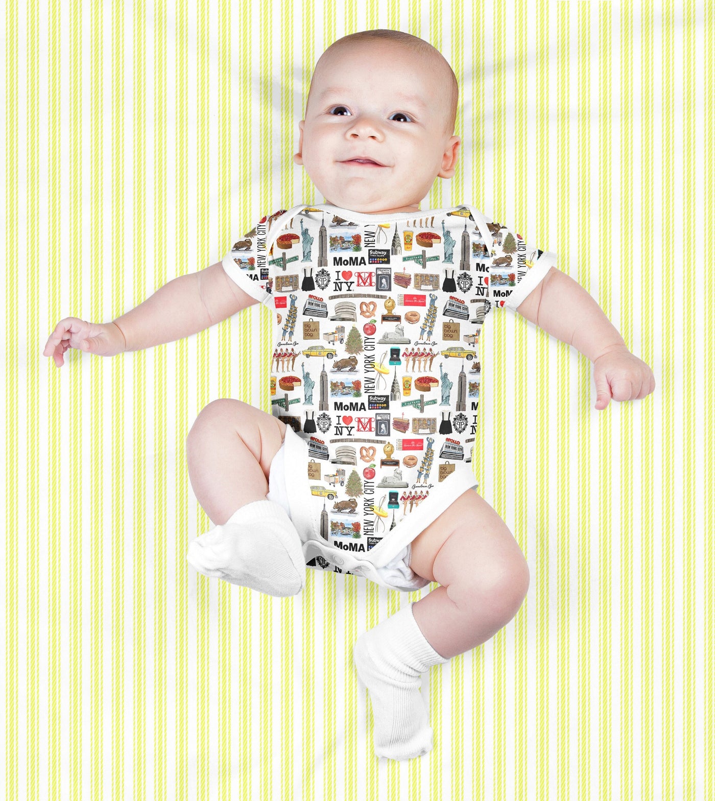 Our baby bodysuits come in 5 sizes and are a clever little homage to some of our favorite locales. Each features iconic original images, and is gift wrapped in a cellophane bag. They are made-to-order; the general lead time is approximately 2 weeks-3 weeks.