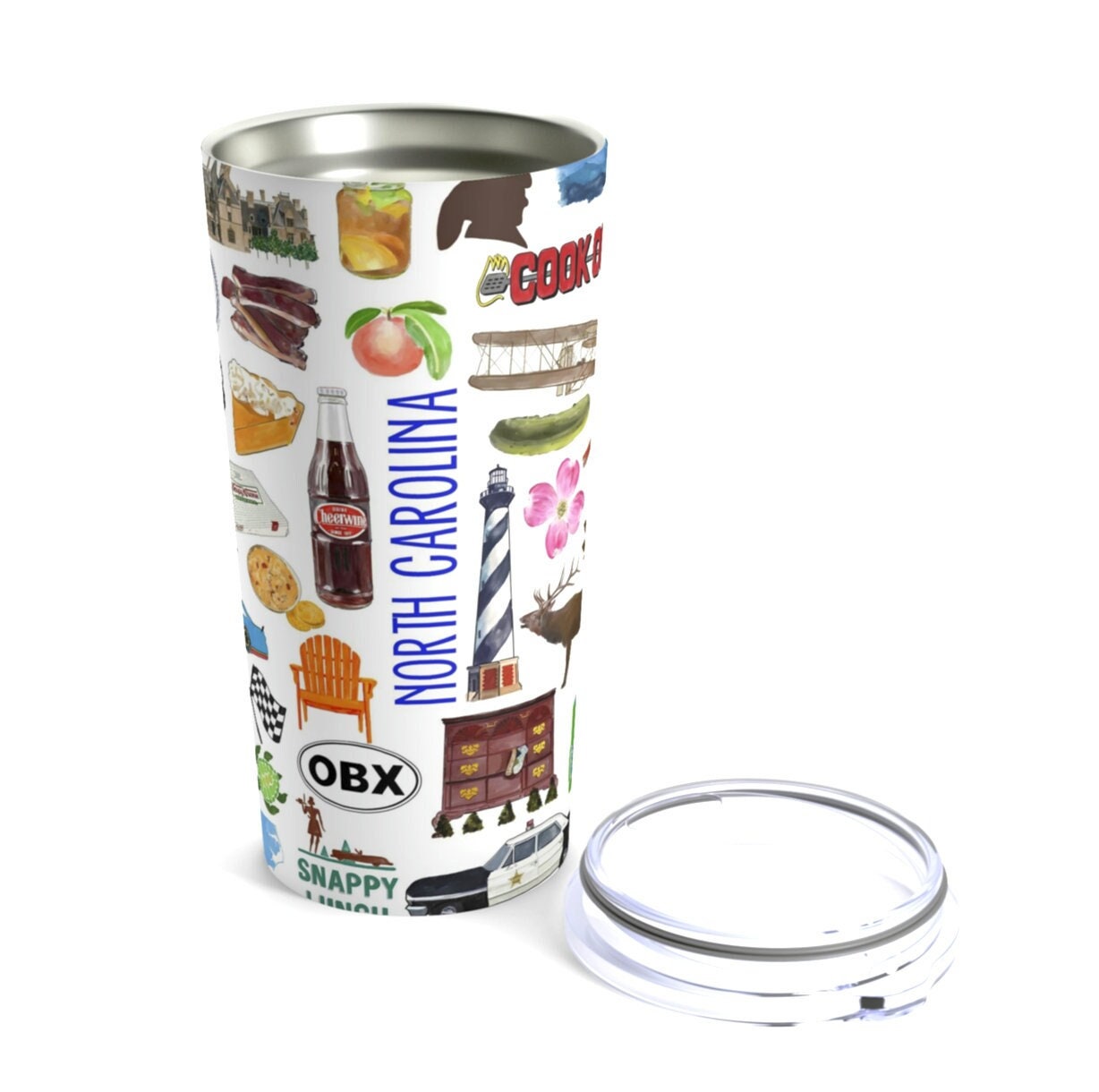 Iconic North Carolina Watercolor 20 ounce Stainless Steel Hot/Cold Cup