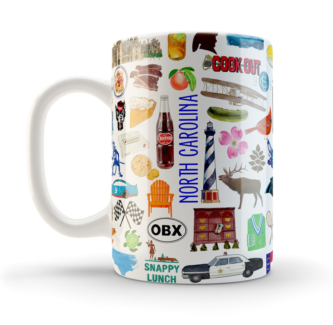 Enjoy your hot beverage in style with our North Carolina ceramic coffee mug. Ideal as bridal party gifts, for gift exchanges, engagement or holiday giving.