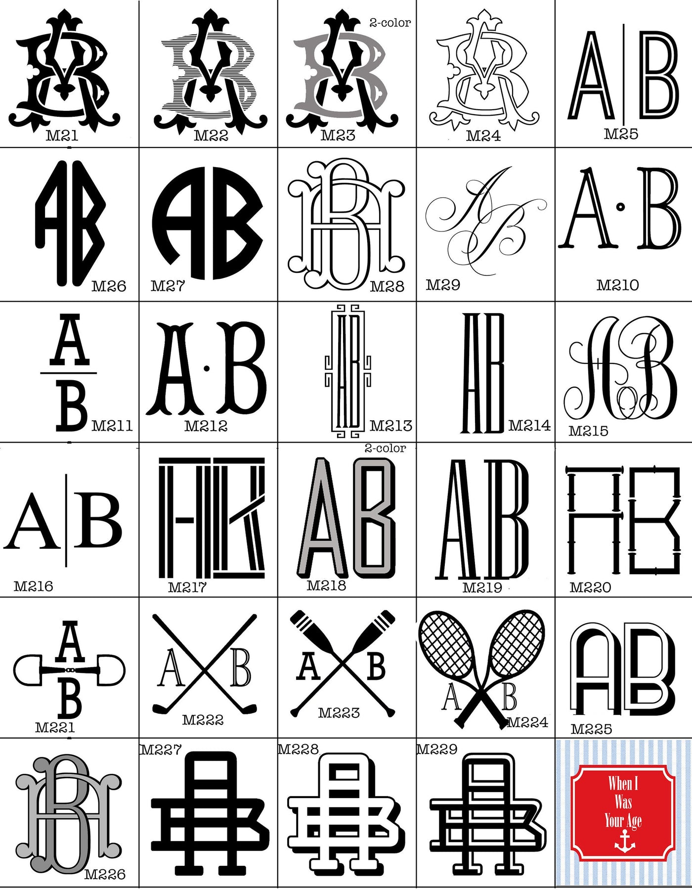 2. The monogram in the exact order in which it should appear. In the case of a 3-letter monogram where the center initial is largest, the surname initial is in the center. In the case of a traditional married couple, the bride's initial is first, the groom's is last.